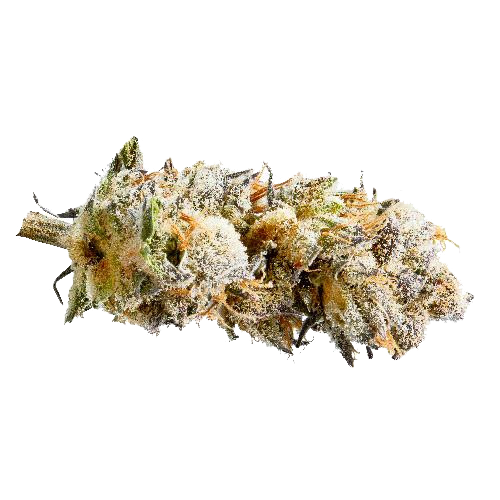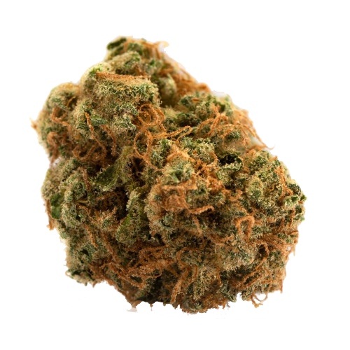 An herbal, musky taste and a tropical, earthy smell. This resin-coated bud features flaming orange hairs and an abundance of white crystal trichomes.